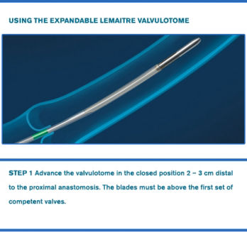 Valvulótomo, autoexpansível da LeMaitre é um avanço revolucionário na valvulotomia, oferece segurança no procedimento, reduz o traumatismo e proporciona uma recuperação acelerada no paciente, eliminando a necessidade de múltiplos tamanhos. É um dispositivo único, utilizado em cirurgia vascular, para desvalvular veia "IN SITU".
